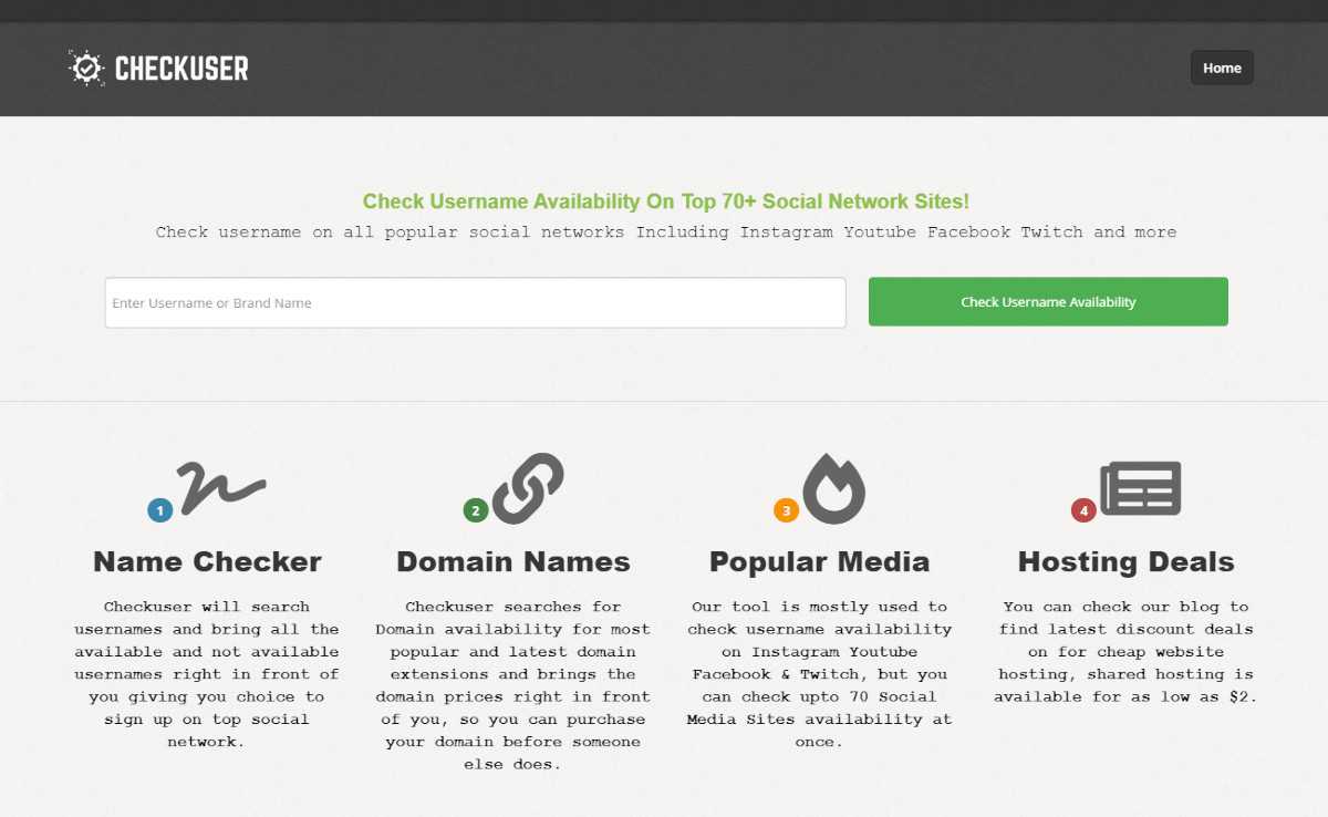 Checkuser ищет по небольшому списку сайтов, а кроме того, позволяет проверять занятость доменного имени.