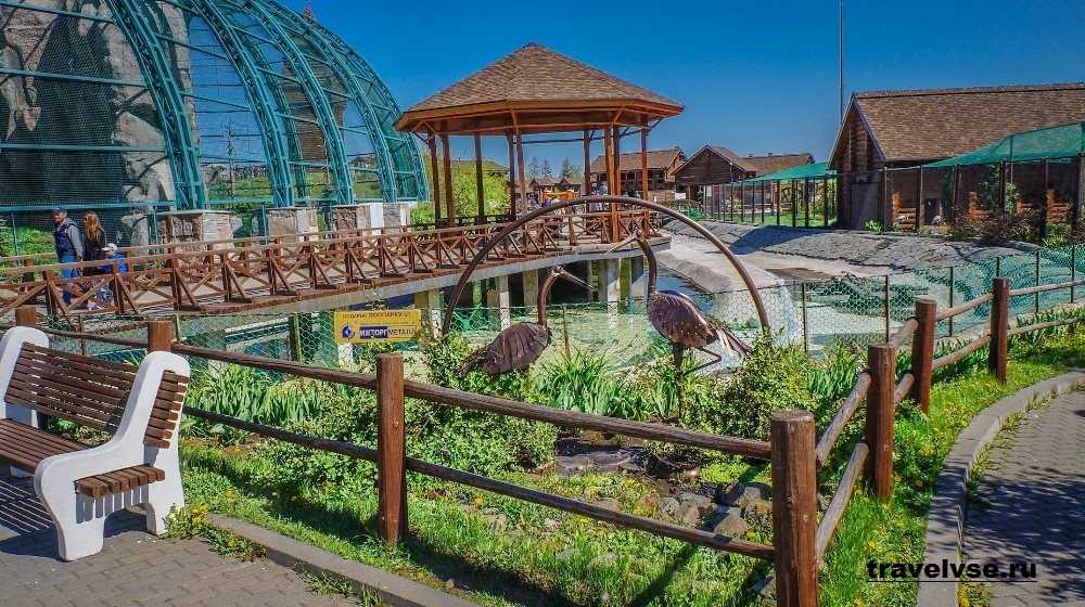 На территории комплекса работает контактный зоопарк, в котором посетители могут не просто увидеть животных в вольерах, но и погладить их.