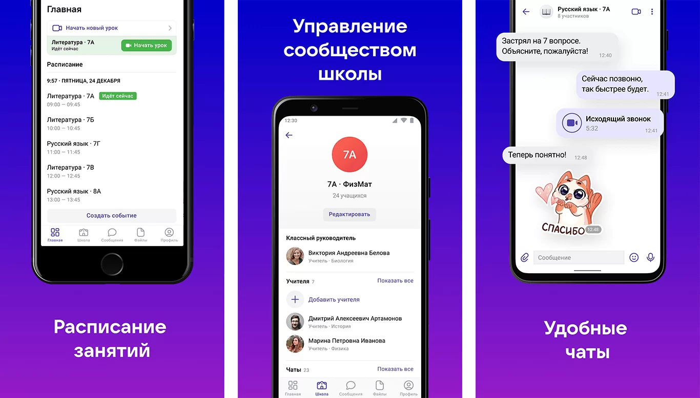 - общение с преподавателями и одноклассниками в режиме чата или видеозвонка.