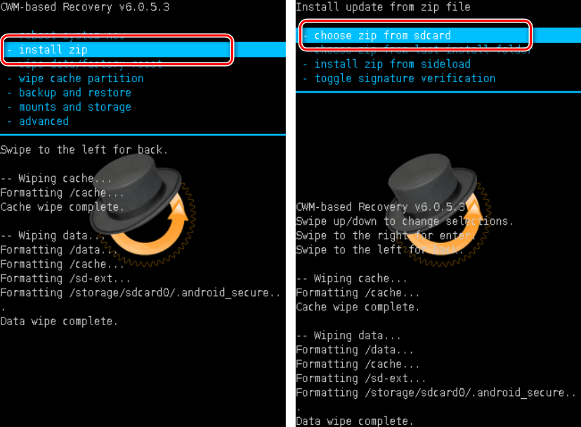 install zip from sdcard — установить обновление или прошивку из zip файла