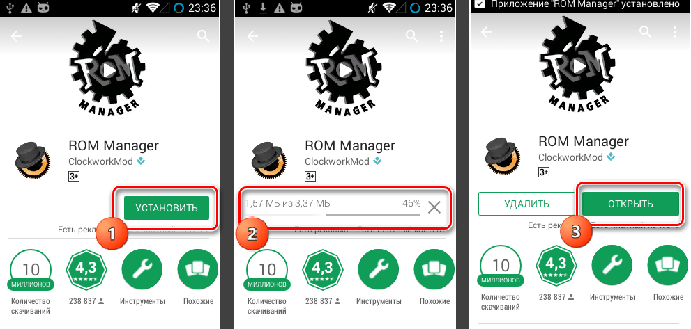 В том случае, если устройство не поддерживается приложением ROM Manager либо установка не проходит корректно, необходимо воспользоваться другими методами инсталляции CWM Recovery. Применимые для различных девайсов способы описаны в статьях из перечня ниже.