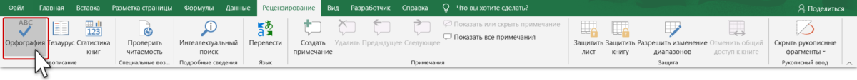 Проверка орфографии в Excel