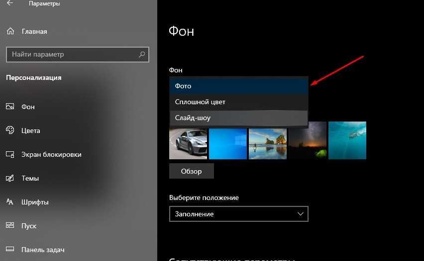 В одноименно вкладке замените параметр «Слайд-шоу» на «Сплошной цвет».
