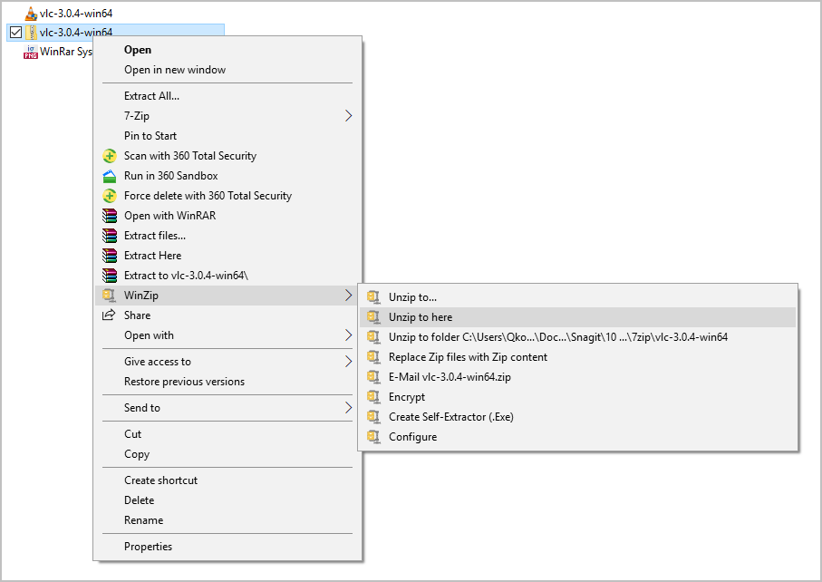 Распаковать rar или zip очень просто. Убедитесь, что 7zip уже установлен и в контекстном меню появился пункт 7zip. Если вы его не нашли, перезагрузите компьютер и проверьте снова.