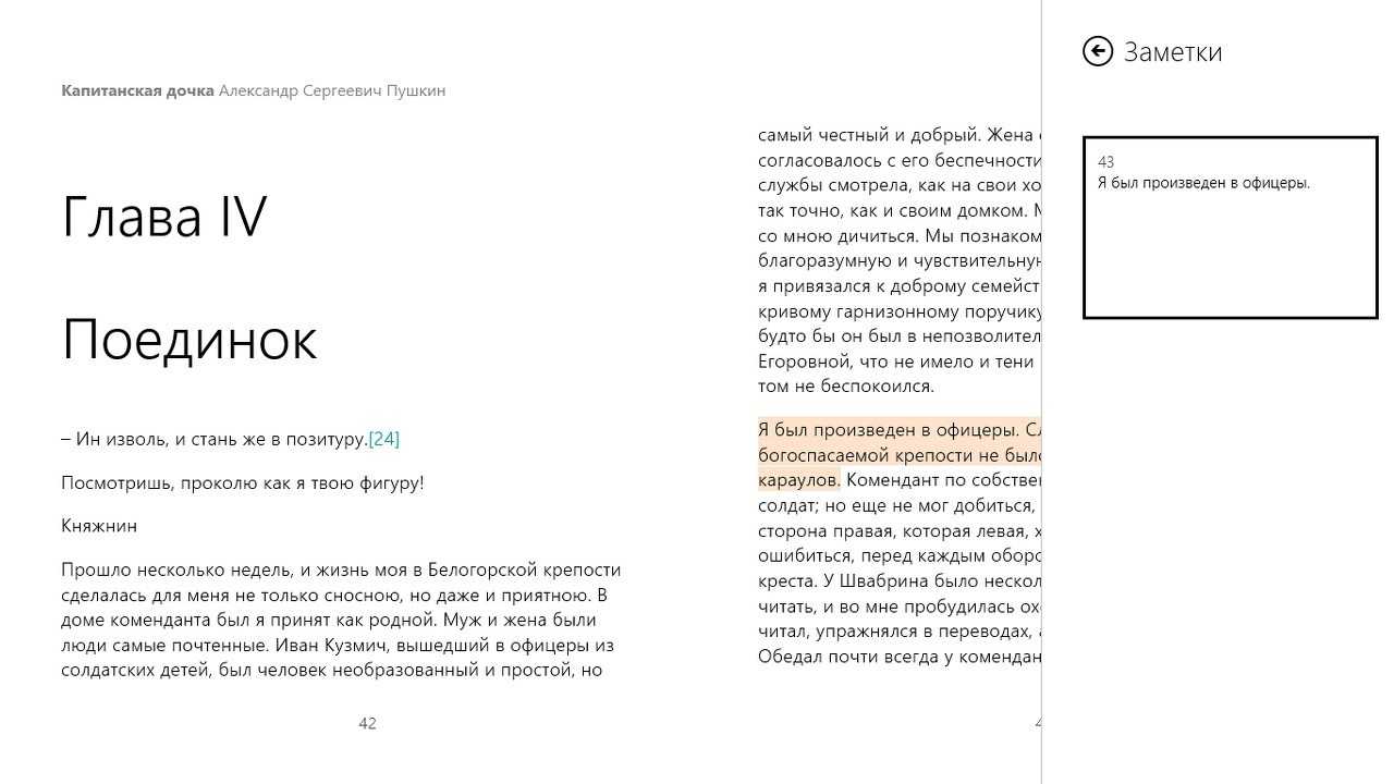 Закончив чтение, достаточно создать заметку, чтобы знать, на каком моменте пользователь остановился. Поддерживается одностраничный и двухстраничный режим просмотра.