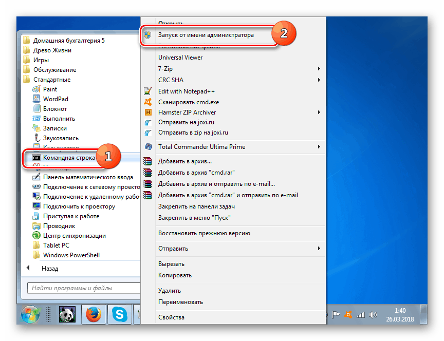 - запустите команду от имени администратора, кликнув правой кнопкой мышки-манипулятора, и открыв контекстное меню;