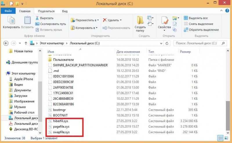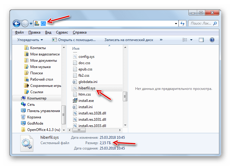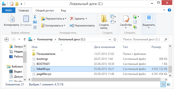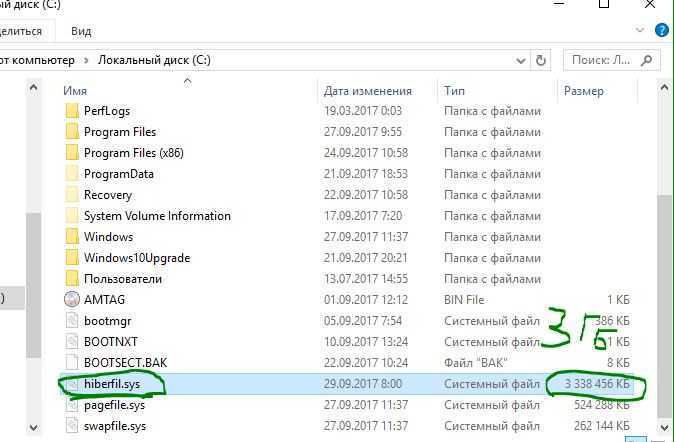 Также, данный элемент пользователь может не заметить на диске. Это может быть из-за того, что гибернация выключена, или человек просто не включил видимость скрытых и защищенных элементов системы.
