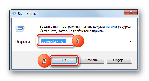 Это простой способ файл hiberfil sys в виндовс 7 удалить – применить команду в строчке «Выполнить». Для этого: