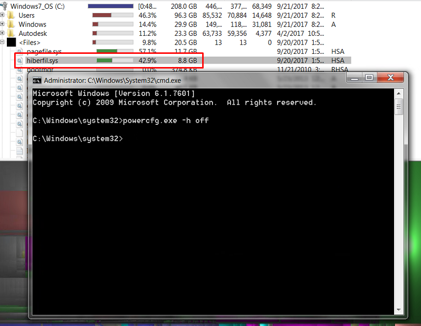 Удаление hiberfil sys из виндовс 7 можно выполнить в командной строке. Сначала, рекомендуется отключить режим «гибернация», как в предыдущем случае, затем: