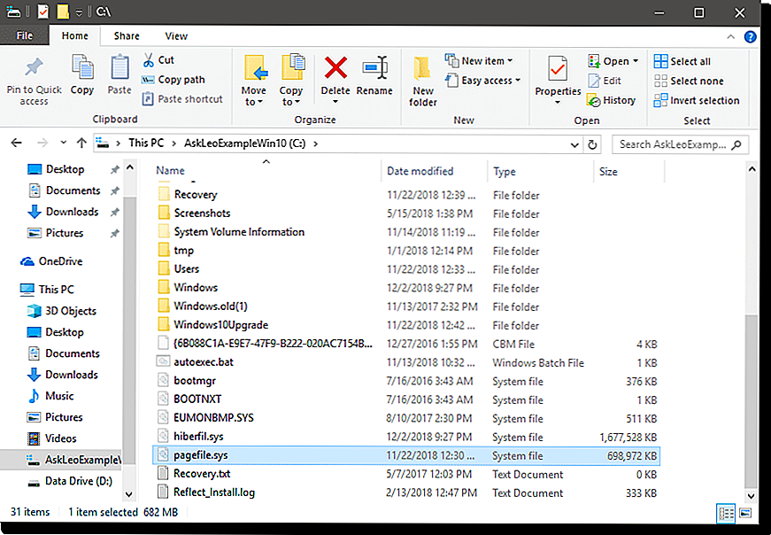 Вы можете не увидеть этот файл на диске. Причина — либо в уже отключенной гибернации, но, что более вероятно, в том что вы не включили показ скрытых и защищенных системных файлов Windows