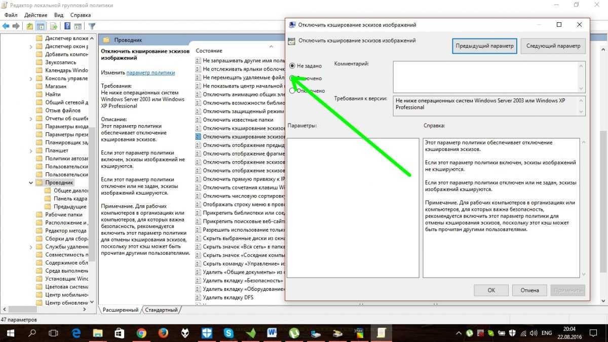 Если вам нужно отключить создание миниатюр на всех компьютерах в домене, воспользуйтесь групповыми политиками. Об этом ниже.