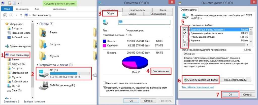 - Нехватка места на диске может привести к нагрузке. Очистите диск от ненужных файлов.