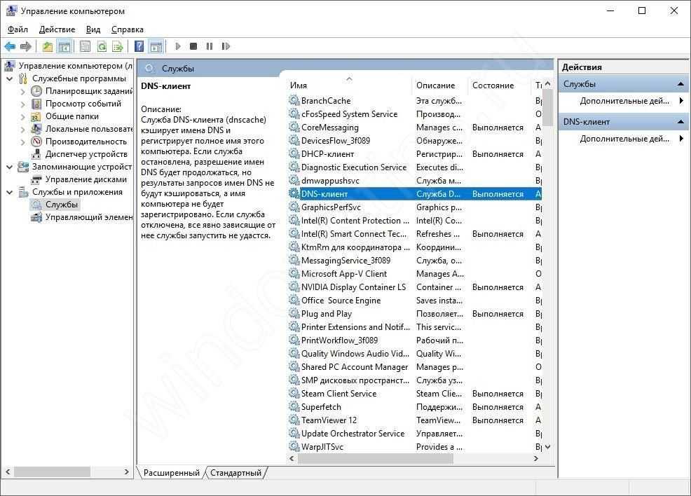 Связь с DNS-клиентом на компьютерах происходит с помощью специальной стандартной службы Windows. Иногда проблемы возникают именно с ней. Поэтому рекомендуется проверить ее работоспособность. Для этого выполните следующие действия: