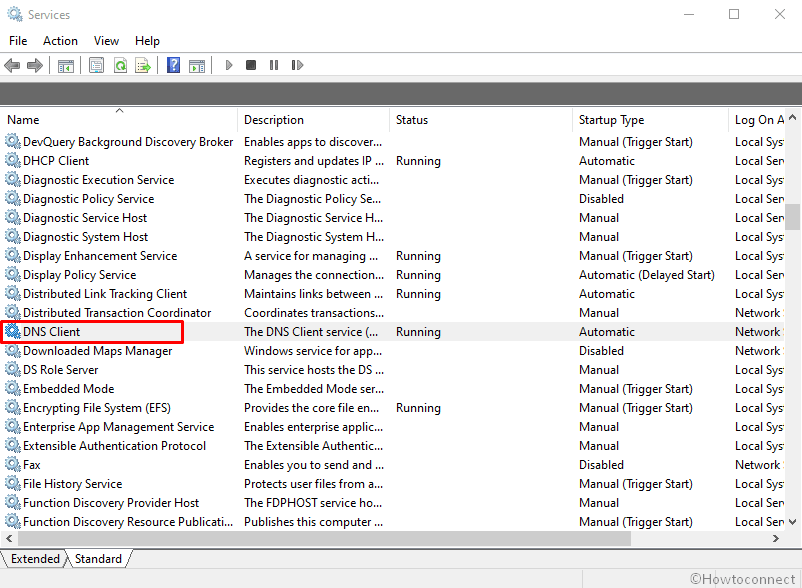 Way-2: Enable or Disable DNS Client Service using Services Console
