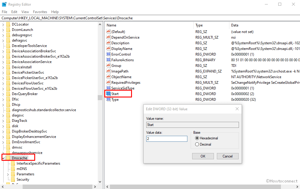 HKEY_LOCAL_MACHINESYSTEMCurrentControlSetServicesdnscache