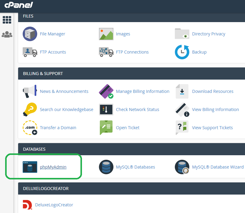 Once you’ve made the changes in WordPress, navigate to phpMyAdmin in your cPanel dashboard and select the database for your relevant website.