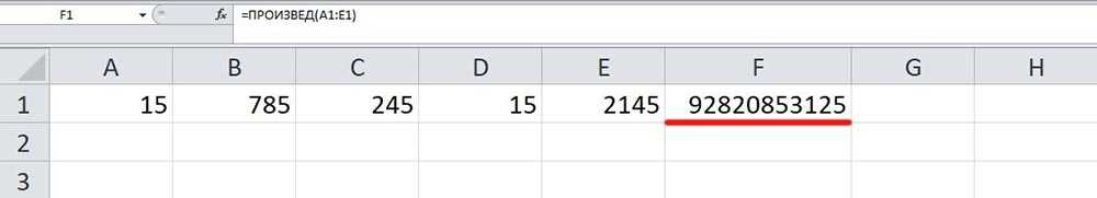 Перемножает все числа в выделенном диапазоне.
