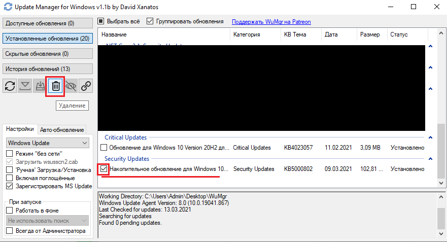 Отключение загрузки определённого апдейта с помощью сторонней программы