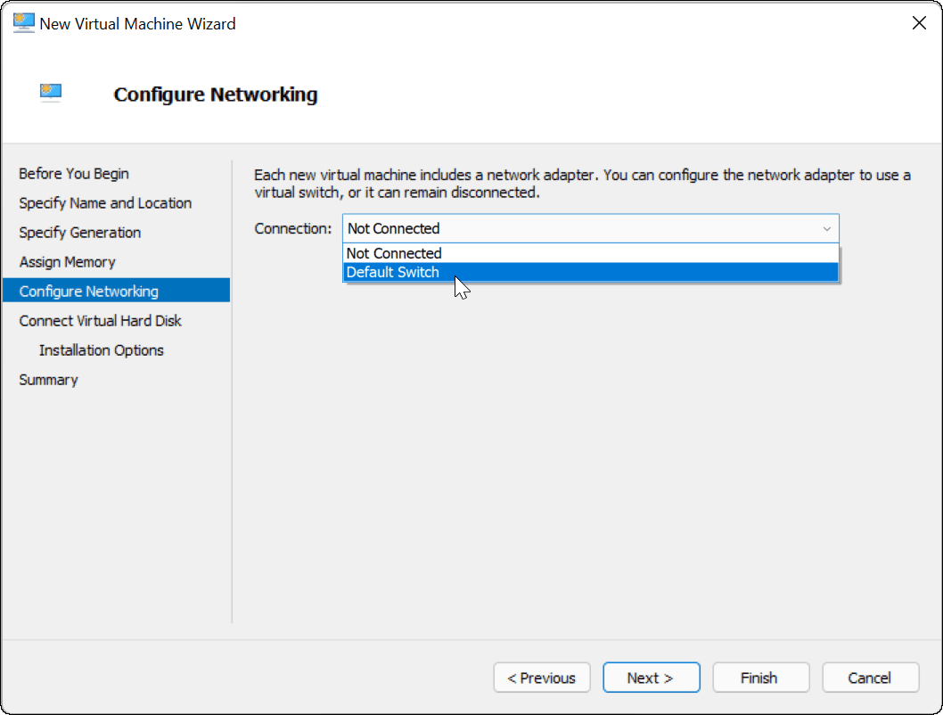 | Настройка сети | Каждая виртуальная машина имеет сетевой адаптер. Его можно настроить на использование виртуального коммутатора или оставить неподключенным. |