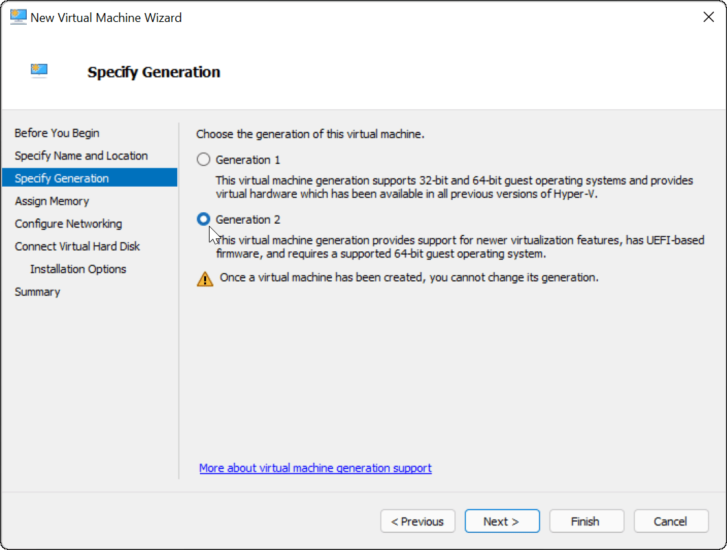 | Укажите поколение | Поколение 1. Поддерживает 32- и 64-разрядные гостевые ОС и предоставляет вирт. оборудование. Поколение 2. Новые возможности, плюс встроенное ПО на основе UEFI. |