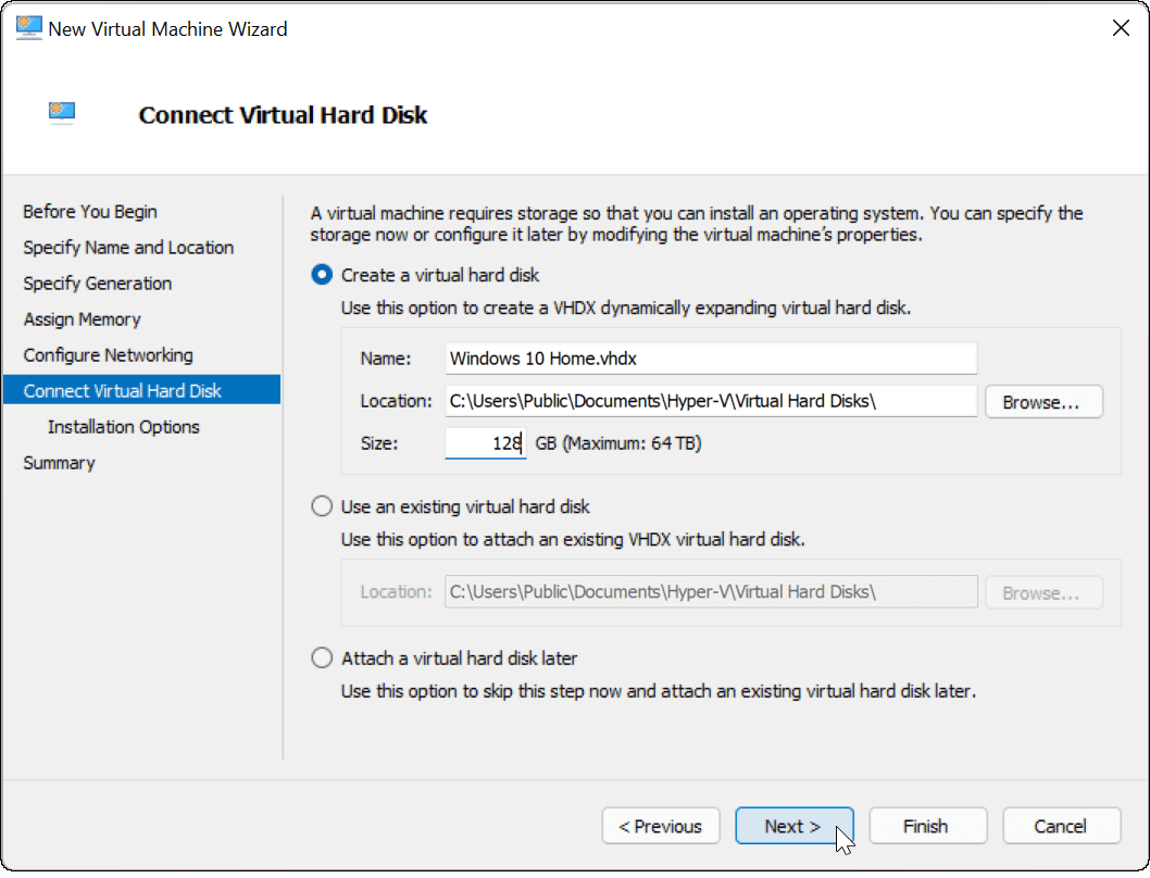 - Выставляем место хранения виртуального HDD и выставляем ему доступный объем.