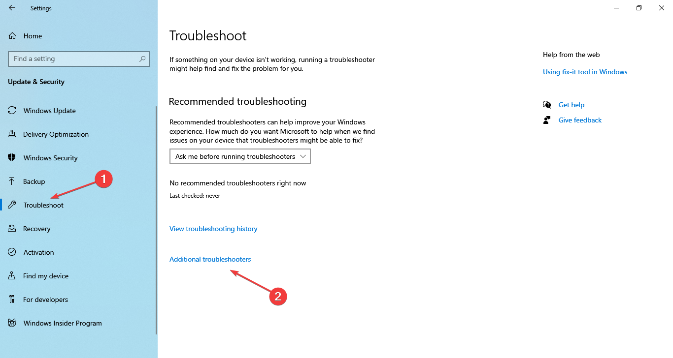 2. Choose Troubleshoot from the left, and click on Additional troubleshooters.
