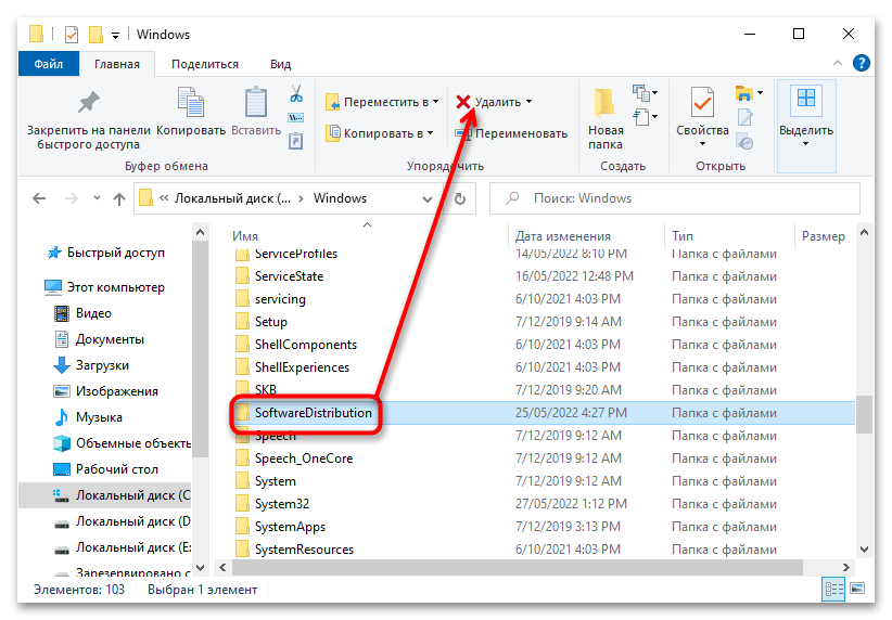 Перейдите в расположение и удалите либо переименуйте каталог «SoftwareDistribution».