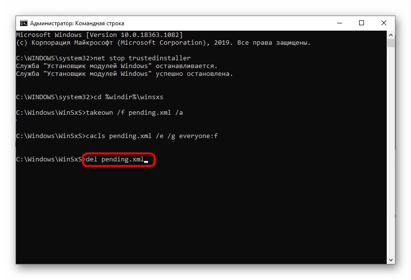 Дождитесь окончания процесса, после чего снова зайдите в Центр обновления Windows 10 и убедитесь, что ошибка 0x80073712 была устранена. Как правило, данный способ работает практически в каждом случае при наличии проблемы подобного типа.