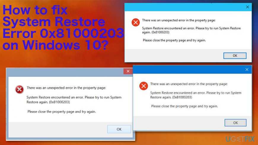 When I launch system restore tab where I can switch system restore from on to off or vice versa, I receive an error message saying “There was an unexpected error in the property page” etc. The error code is 0x81000203. I’m running Windows 10 Pro. Could someone specify what the issue might be?