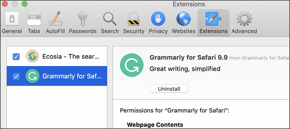 - Отсюда вы можете отключить любое расширение или надстройку с помощью синей кнопки.