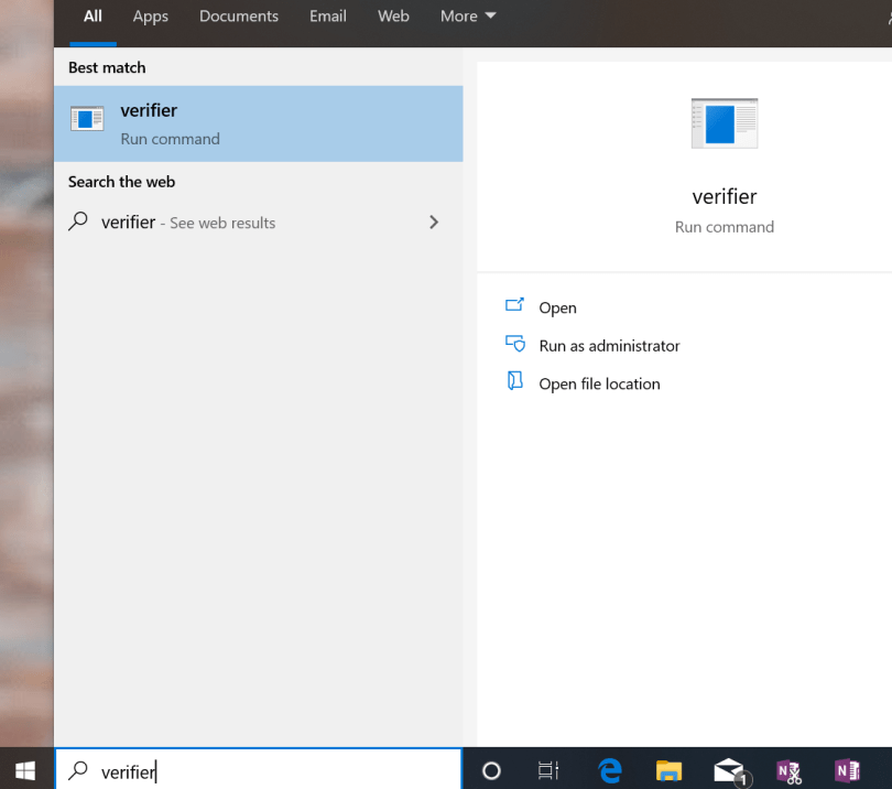 To track down the specific problem driver, you’ll need to run Driver Verifier, an application included with Windows. Driver Verifier is a very handy inbuilt tool of Windows that checks you computer for unsigned drivers, the behaviour of drivers, errors in the execution of driver code, drivers built for older versions of Windows, etc. To get started, open Driver Verifier by simply typing verifier.exe in your Windows search bar.