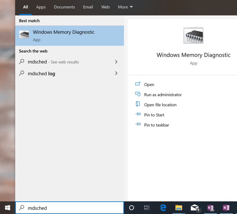 If disabling the problem driver does not resolve the issue, you should then look to isolate physical memory as a possible cause. For that, you can use Windows Memory Diagnostics, which is another inbuilt tool of the Windows operating system. To open type mdsched in you windows search bar and open the Windows Memory Diagnostic.