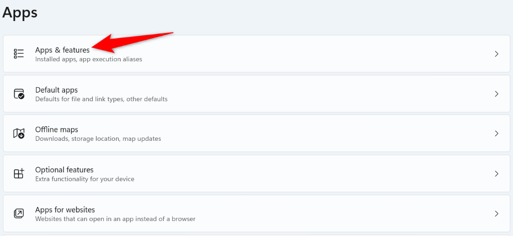 - Select Apps in the left sidebar and Apps & features on the right pane.