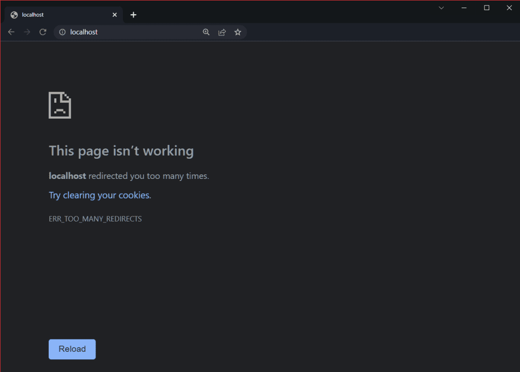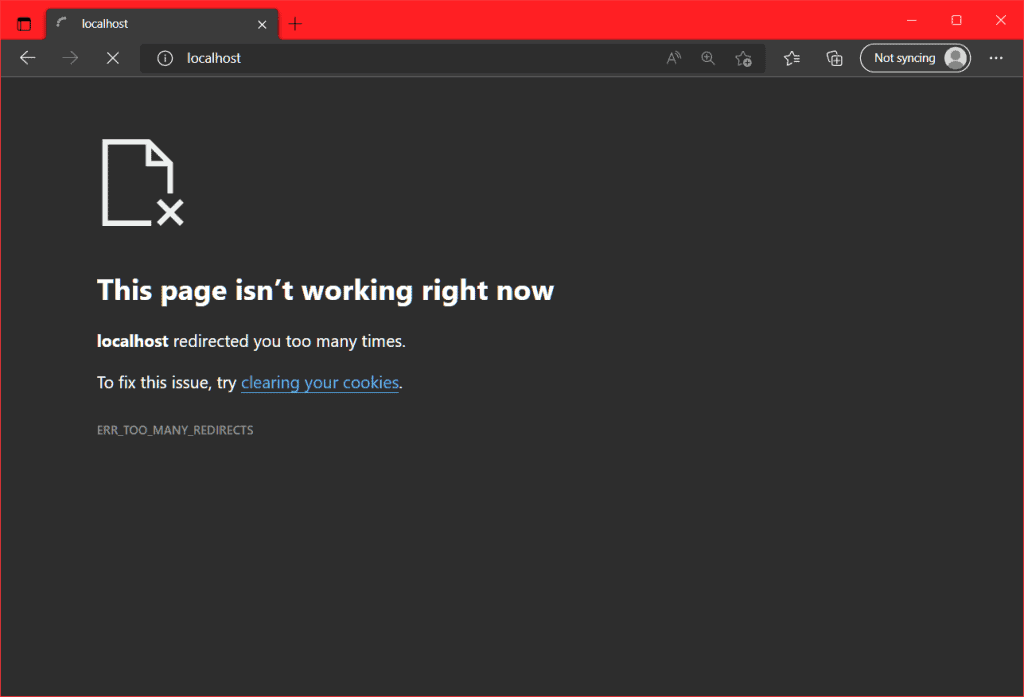 In this case, the browser tells us that it “cannot open the page because too many redirects have occurred.”