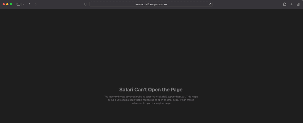 Safari, like Firefox, does not use the “err_too_many_redirects” error code, but specifies that there are too many redirects.