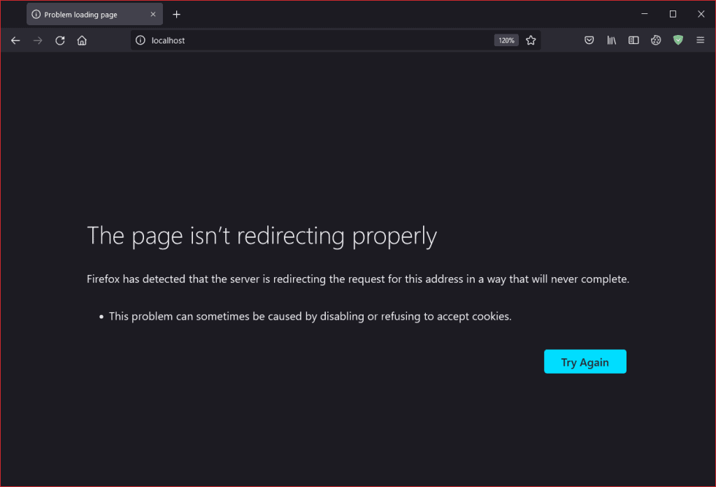 As you can see, in this case Firefox does not use the “err_too_many_redirects” error code.
