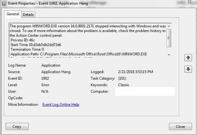 Исправить ошибки WINWORD.EXE