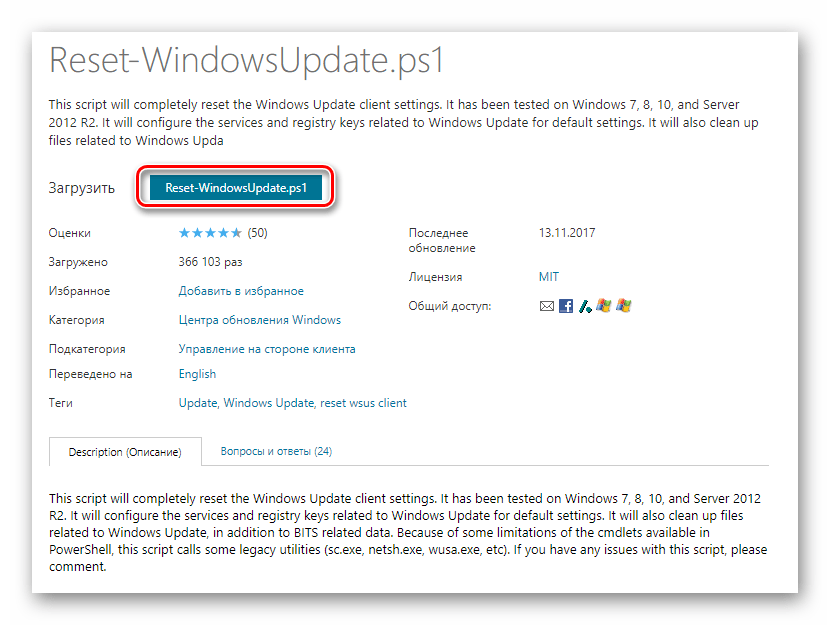 Далее нужно загрузить на устройство специальный скрипт, созданный специалистами из Microsoft. Он исправляет ошибки, связанные с работой «Центра обновлений». Перейдите по данной ссылке и кликните кнопку, отмеченную на скриншоте ниже.