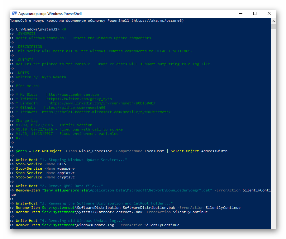 Ранее на сайте разработчиков висел скрипт «Reset-WindowsUpdate» – он помогал решать большинство проблем с центром обновления, но сейчас он полностью вшит в систему, поэтому можно его запустить оттуда: