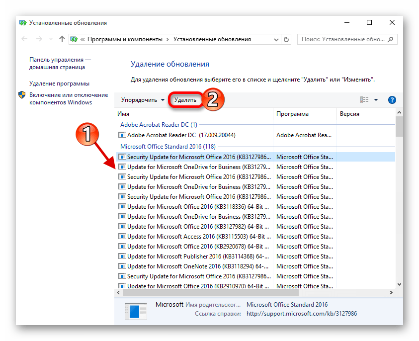- Нажмите на опцию «Удалить», чтобы удалить поврежденное обновление.