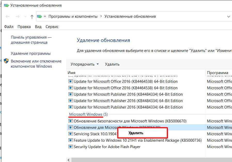 - Выберите последнее обновление и нажмите на него правой кнопкой мыши.