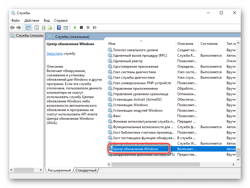 Теперь открываем службы Windows и отключаем Центр обновления Windows: