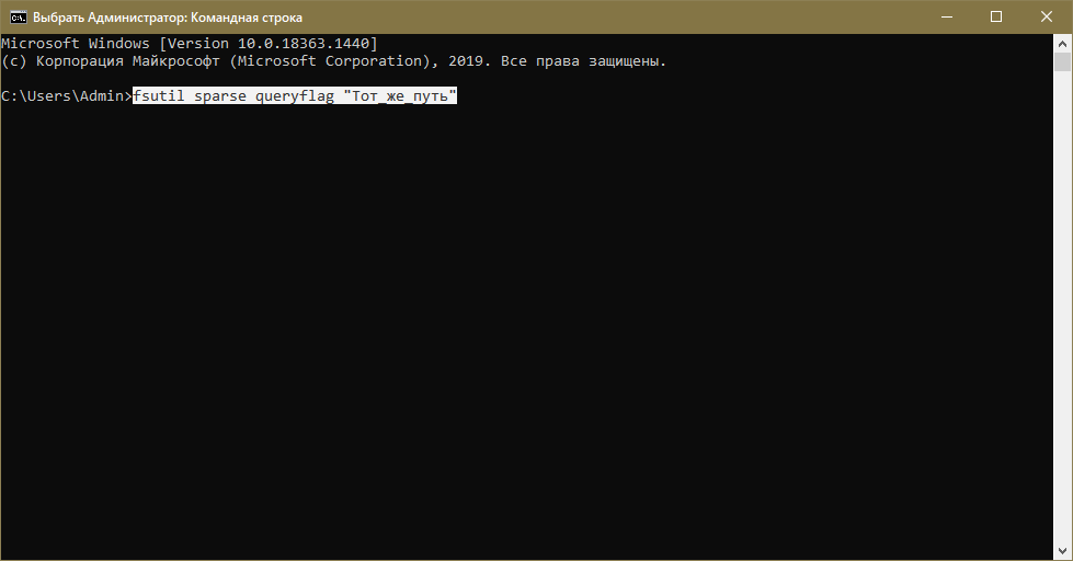 | 1 | fsutil sparse queryflag {полный путь к файлу} |