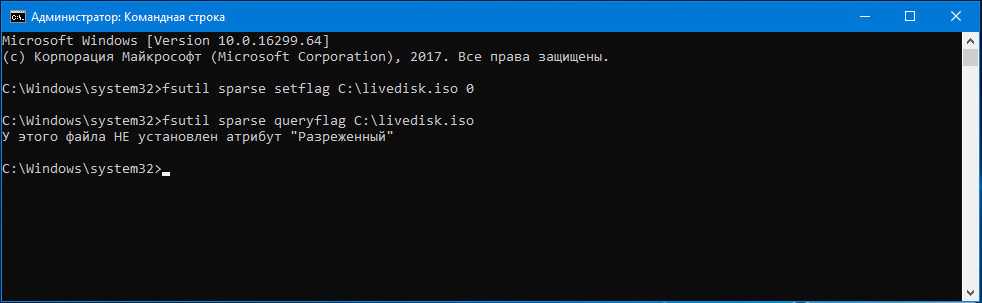 fsutil sparse setflag E:\Write\Games\Civilization IV.iso (Если выскочит ошибка Использование: fsutil sparse setflag <имя_файла> . Пример: fsutil sparse setflag C:\Temp\test.txt, то введите путь с кавычками, так как в нем есть пробелы)