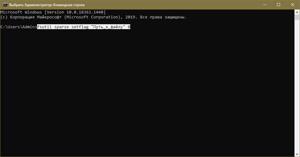| 1 | fsutil sparse setflag {полный путь к файлу} 0 |