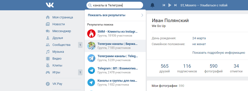 Если же вам не нужна конкретная группа, то можно найти необходимый контент по интересам, начав вводить в поисковик общую тематику