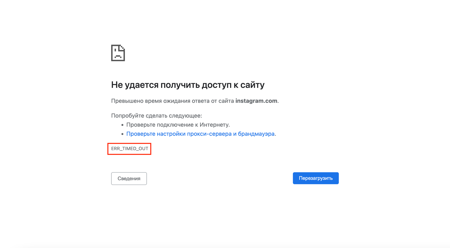 Что означает ERR_CONNECTION_TIMED_OUT?