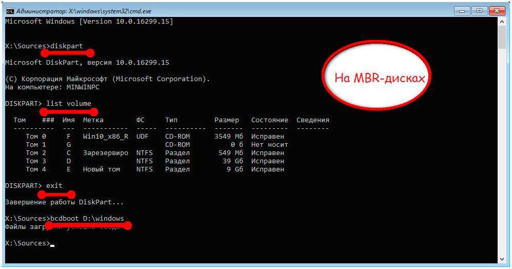 Приведенные выше команды перезапишут новую главную загрузочную запись (MBR) на диск.