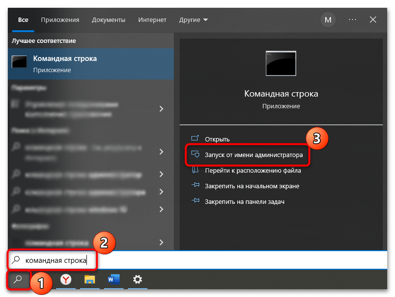 Способ 1. Запустите командную строку через права администратора. Для этого в поиск введите cmd и нажмите на него правой кнопкой и выберите пункт от имени администратора.