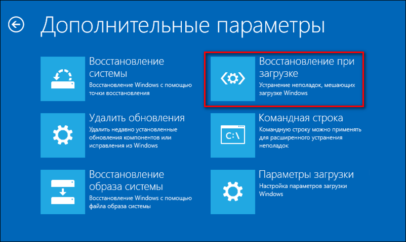 - Запускаем инструмент «Восстановление при загрузке».